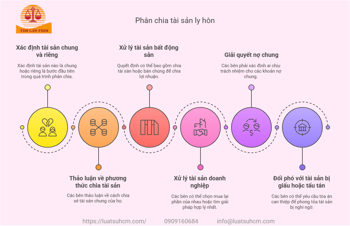 Phân chia tài sản khi ly hôn là một trong những vấn đề phức tạp, dễ phát sinh tranh chấp giữa vợ chồng. Dưới đây là các vấn đề pháp lý thường gặp và cách giải quyết theo quy định của pháp luật Việt Nam:
