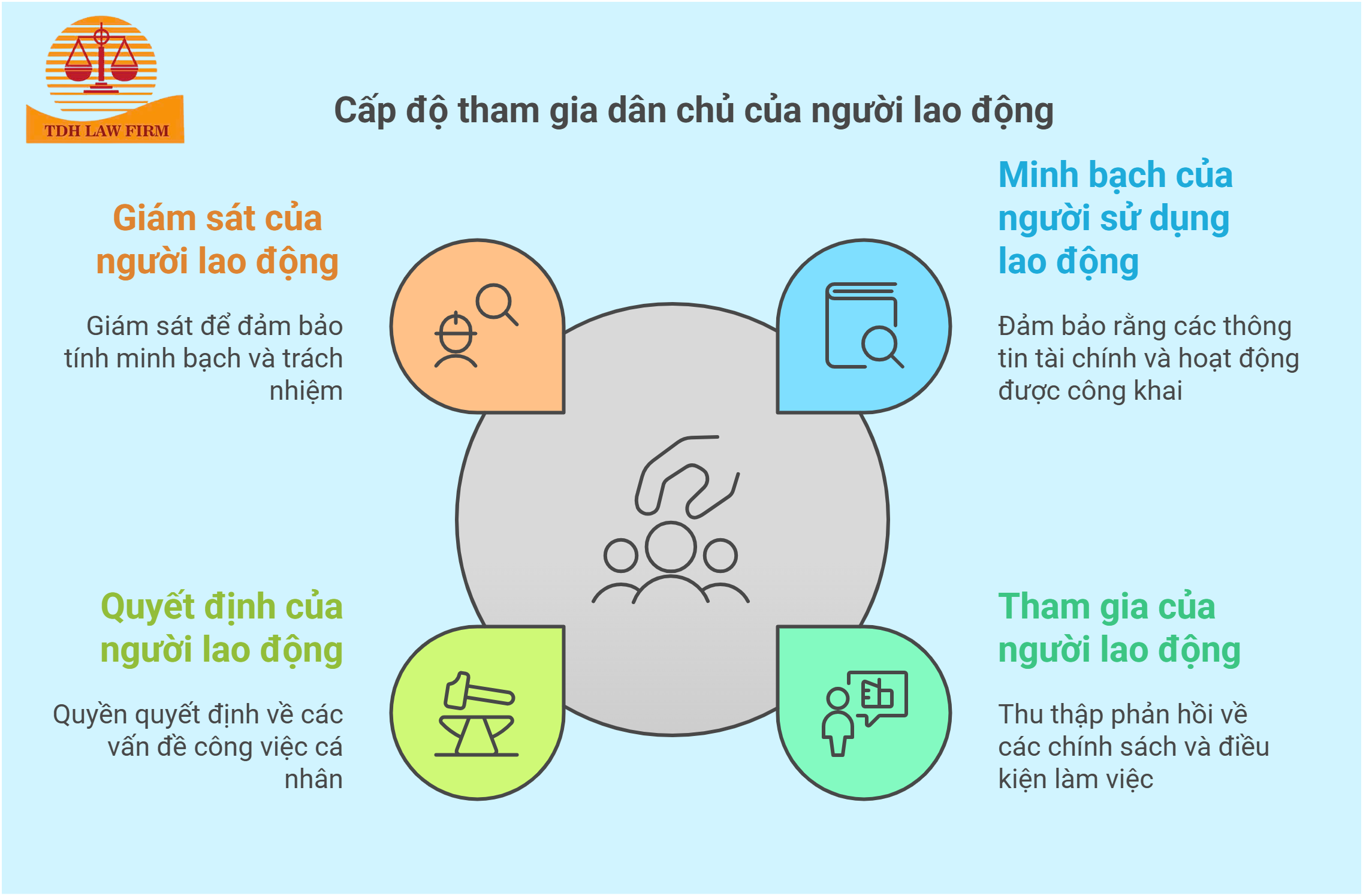 Người lao động có thể tham gia quy chế dân chủ ở bốn cấp độ: