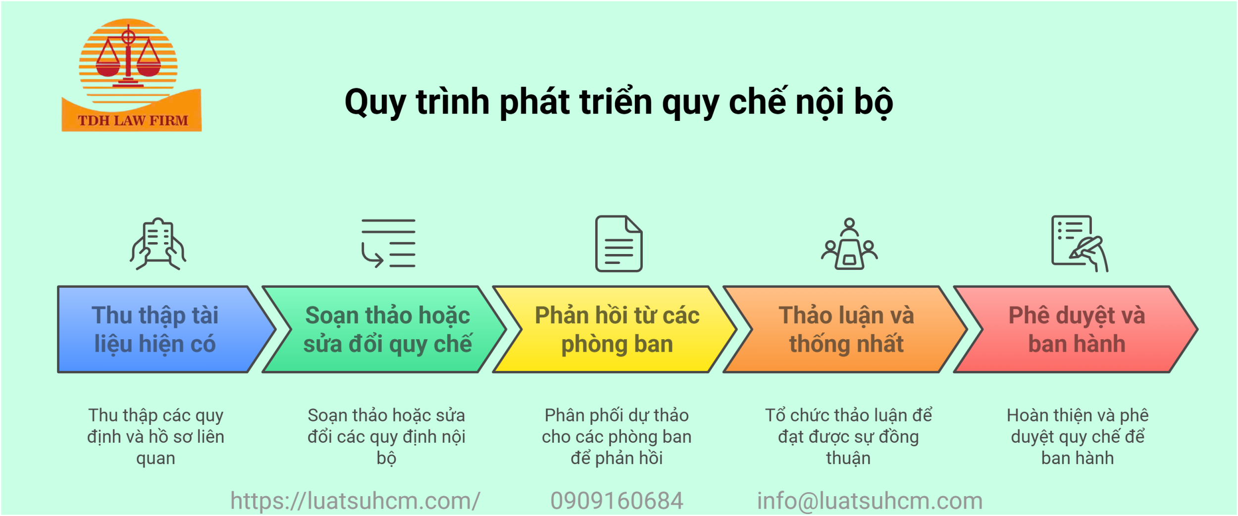 Quy trình xây dựng, soạn thảo quy chế quản lý nội bộ DN gồm các bước sau: