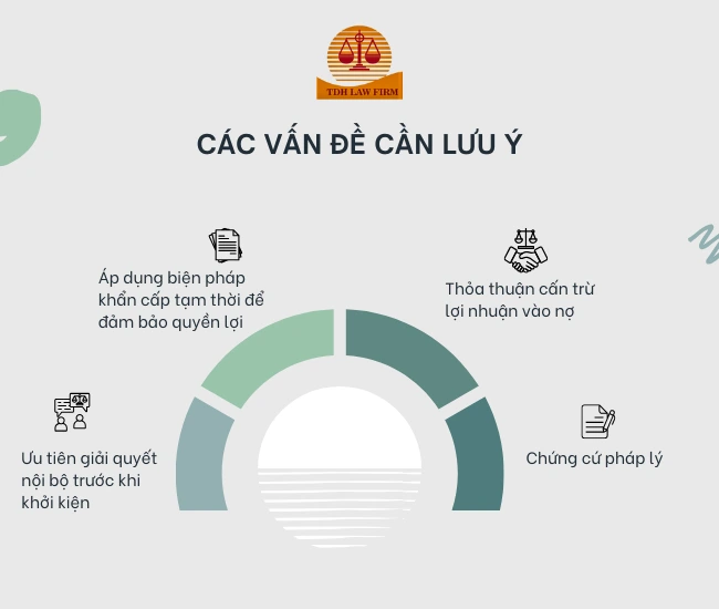 Thứ hai, cần xem xét áp dụng biện pháp khẩn cấp tạm thời trong trường hợp cần thiết. Nếu có dấu hiệu cho thấy công ty đang tẩu tán tài sản, chuyển nhượng bất hợp pháp tài sản hoặc rút vốn nhằm trốn tránh nghĩa vụ chi trả lợi nhuận, cổ đông/thành viên có quyền đề nghị Tòa án áp dụng các biện pháp như phong tỏa tài khoản, kê biên tài sản hoặc ngăn chặn giao dịch. Việc áp dụng kịp thời các biện pháp này không chỉ giúp bảo đảm quyền lợi của cổ đông mà còn ngăn ngừa thiệt hại không thể khắc phục được về sau.