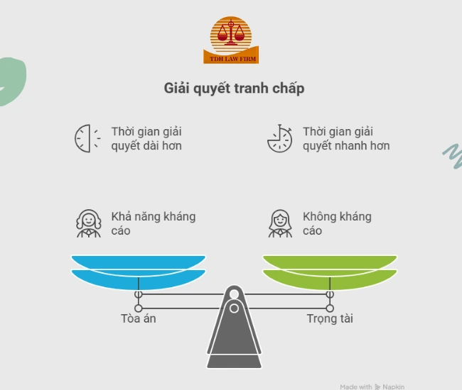 Tùy theo thỏa thuận giữa các bên, tranh chấp có thể được giải quyết bằng Trọng tài thương mại hoặc Tòa án nhân dân: